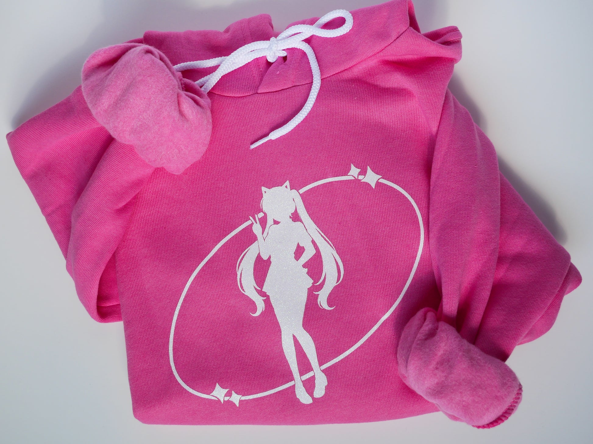 Channel your inner kawaii queen with this ultra-cozy, ultra-cute hoodie featuring a sparkly anime girl rocking kitty ear headphones! Whether you're gaming, streaming, or just vibing, this hoodie is your new go-to for soft style and serious sparkle.